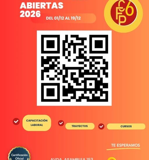 Oferta Educativa 2026 INSCRIPCIONES 2026 Del 01/12 al 19/12 Para inscribirte: Ingresa en guarani-autogestionagencia.bue.edu.ar o podés comunicarte al 4922-3683 o al 4923-1419 mail inscripciones.cfp6@gmail.com TE ESPERAMOS