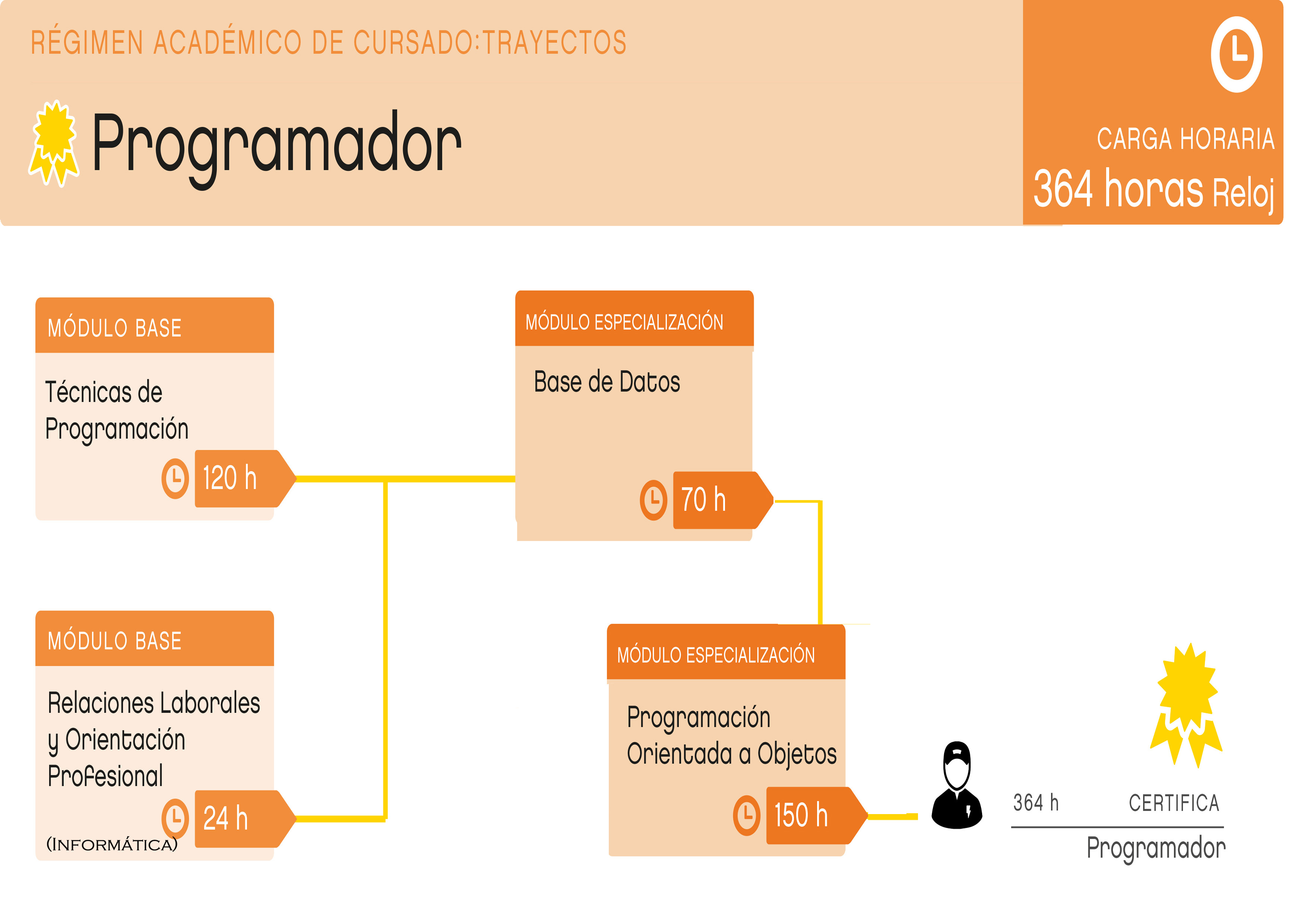 Con este trayecto vas a poder: escribir código de programación de acuerdo con las especificaciones formales; interpretar especificaciones de diseño de las asignaciones a programar en el contexto del desarrollo de software en el que participas; planificar tu trabajo en el contexto del equipo de desarrollo del proyecto; verificar el código desarrollado y depurar estructuras lógicas o códigos de programas; manejar y manipular los datos y su relación con las aplicaciones a desarrollar o desarrolladas; realizar la documentación técnica y de usuarios de acuerdo con los requerimientos funcionales y técnicos recibidos.
